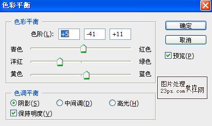 10.新建色彩平衡調(diào)解層,具體參數(shù)如下