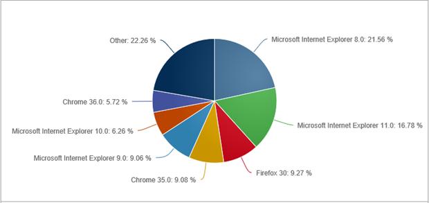 上圖為2014年7月全球瀏覽器市場份額(來自NetMarketShare.com的數據)