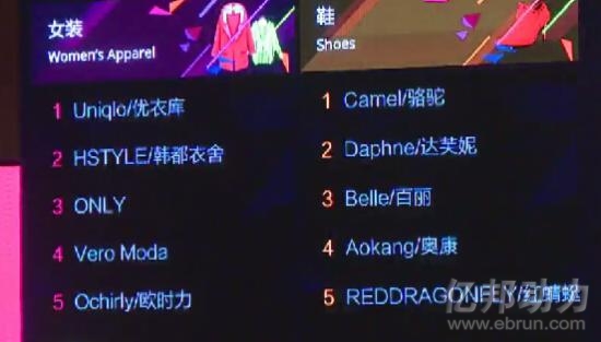 2013年雙11結束后,億邦動力網從淘寶數據監測工具數據魔方獲得的資料顯示,今年天貓雙十一女裝類目的銷售前十依次為茵曼、韓都衣舍、阿卡、裂帛、歐時力、波司登、ONLY、歌莉婭、Vero Moda、初語。其中,茵曼、韓都衣舍、阿卡、裂帛、初語等五家均為淘品牌,且初語已經被茵曼收購。