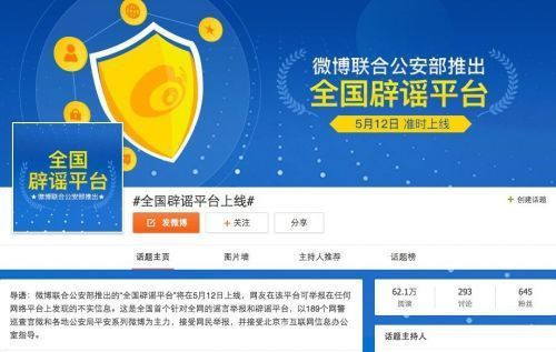 “全國辟謠平臺”上的網(wǎng)警官微和各地公安局的平安系列官微將會第一時間對網(wǎng)友舉報進行核查處理,并通過發(fā)布#微博辟謠#內容進行官方辟謠。@微博辟謠 也將聯(lián)合公安部發(fā)布每月辟謠報告,集中公布典型謠言和相關數(shù)據(jù)。