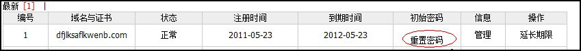 會返回到域名管理列表后,再點擊“重置密碼”,即可用新的密碼來登陸管理域名了。如圖: